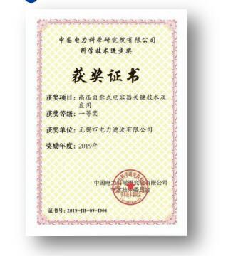 中國(guó)電工技術(shù)學(xué)會(huì)電力電容器委員單位  -   產(chǎn)品榮獲中國(guó)電科院2019年度科技進(jìn)步一等獎(jiǎng)